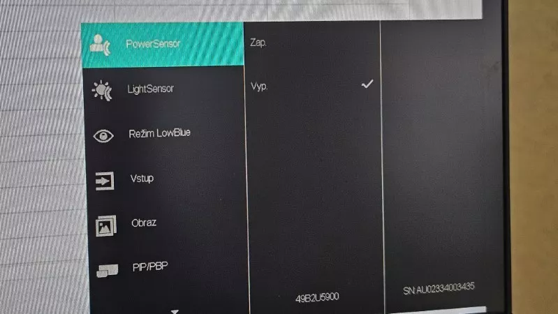 V OSD menu najdeme i možnost aktivace senzoru, který rozpozná přítomnost uživatele před monitorem a dokáže tak monitor ztmavit, jakmile se od něj vzdálíme. Praktická funkce pro úsporu energie i pro zachování soukromí.