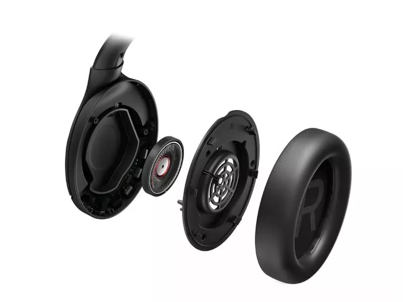 Všechna tlačítka i USB-C a audiokonektor jsou umístěna na pravém náušníku. Je zde vypínač, tlačítko aktivace a deaktivace mikrofonu a tlačítko pro ovládání ANC (vypnuto, průchozí, zapnuto).