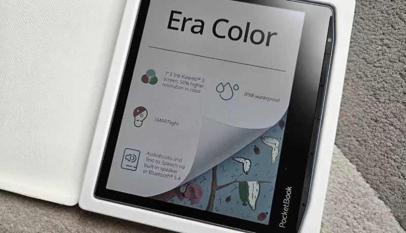 Nedávno jsme měli možnost testovat větší, 7,8” verzi čtečky PocketBook InkPad Color 3 (test najdete zde), která je osazena novým barevným displejem Kaleido 3. Ten má oproti předchozím verzím vylepšenou jemnost barevné vrstvy, která teď dosahuje 150 ppi a zároveň vyšší barevnou saturaci. Vyšší rozlišení je výhodou jak při čtení barevných časopisů a komiksů, tak při čtení černobílého textu. Stejnou generaci displeje používá i PocketBook Era Color, v tomto případě ale s o něco menší, 7” úhlopříčkou.