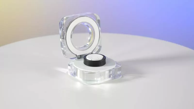 Prsten se dodává v průhledném pouzdru se světelnými diodami, ve kterém se i nabíjí. Nabíjecí pouzdro budete potřebovat také během párování prstenu se smartphonem.
