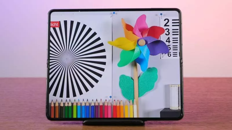 Co se týče kvality, vnější i vnitřní displeje modelu Fold5 jsou na výborné úrovni. Oba používají panel OLED s ohromně širokou paletou barev a perfektním kontrastem. Maximální jas přesahoval v laboratorním testu hodnotu 1 400 cd/m2, což znamená, že obsah lze bez problémů číst i na slunečním světle.