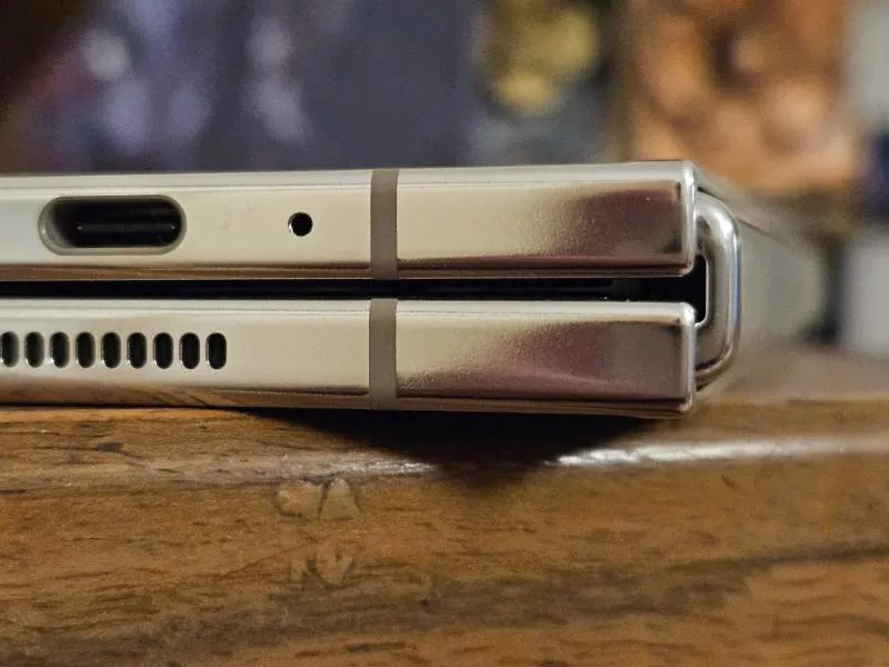 Na rozdíl od předchozích modelů se Fold5 při skládání konečně zavře tak, že mezi displeji není žádná mezera, u minulého modelu Fold 4 tam byla viditelná škvíra. Skládací telefon be škvíry je nejen hezčí, ale také se do jeho vnitřku hůře dostává prach a nečistoty. Ani pátá generace však zatím nemá certifikovanou ochranu proti prachu, pouze proti vodě. Samotný pant působí mimořádně kvalitně a lze jej zavírat a otevírat bez větší námahy.