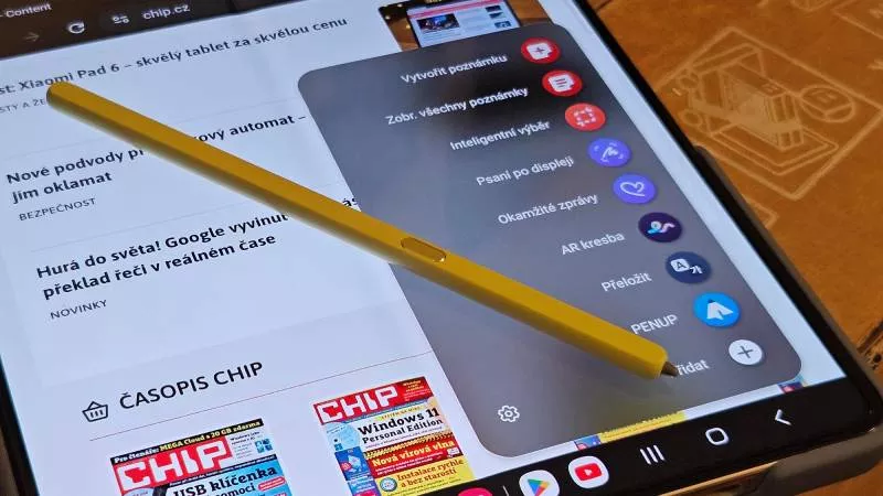Po rozložení Galaxy Z Fold5 se z běžného, i když poměrně tlustého a především úzkého mobilního telefonu, stává malý tablet. V otevřené podobě je telefon ideálním partnerem pro stylus S Pen, ale budete si jej muset za cca tisíc korun koupit zvlášť.