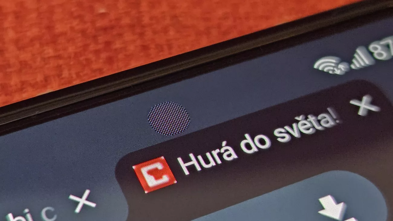 Vnitřní displej obsahuje selfie kamerku, skrytou pod obrazem na displeji, její kvalita ale není valná
