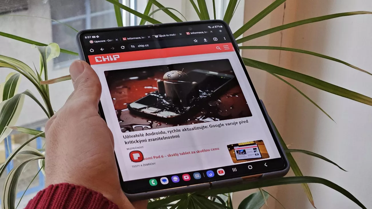 Ve srovnání se skládačkou Google Pixel Fold je Samsung Fold5 v rozloženém stavu výrazně širší. Na velkém displeji je mnohem více místa, z čehož těží i klávesnice, protože psaní na úzkém displeji složeného Foldu 5 je trochu nepohodlné.