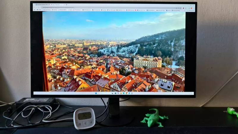 Ačkoliv se maximální svítivost panelu v SDR režimu pohybuje okolo 270 cd/m2, v praktickém provozu jsme i přes den pracovali s jasem staženým na cca 30-40 %, a to i u okna při slunečním svitu. Na minimálních odlescích okolních světelných zdrojů se pozitivně projevuje i funkční protiodrazová vrstva na displeji. Jas na úrovni 30-40 % zároveň znamená i poměrně ekonomický provoz na úrovni 24-30 W.