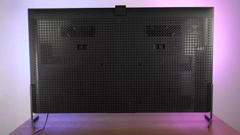 Totéž platí pro dodávanou webovou kameru. Její přítomnost v balení rozhodně kvitujeme, ale její Full HD obraz vypadá na obrazovce 4K přinejmenším nepříjemně. Videohovory (v současnosti pouze přes Google Meet) jsou ale jen jedním z možných využití kamery. To totiž dokáže také automaticky přizpůsobit teplotu barev televizoru osvětlení místnosti, takže obraz vypadá stejně přirozeně na jasném slunci jako večer při tlumeném světle. Pokud kamera zjistí, že před televizorem po určitou dobu nikdo nesedí, může snížit jas obrazu a snížit tak spotřebu. Kamera také dokáže varovat děti, pokud sedí příliš blízko obrazovky.