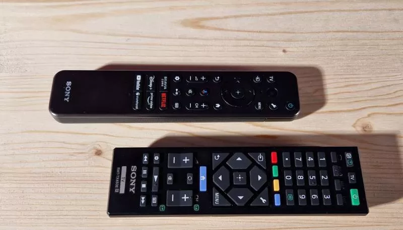Sony není na dálkové ovládání skoupé a dodává dvě varianty, klasický infračervený model a kompaktní ovladač s hliníkovým designem. Druhý jmenovaný nabízí čtyři tlačítka pro rychlý přístup k vlastní streamovací službě Bravia Core a také ke třem oblíbeným poskytovatelům Amazon Prime, Disney+ a Netflix. Pokud se dálkový ovladač ztratí, dá o sobě vědět tím, že zazvoní a rozsvítí se po stisknutí speciálního tlačítka na televizoru. Na rozdíl od předchůdce stojí tento televizor opět na dvou křehkých nožkách. Pomocí nich lze také nastavit výšku tak, aby se pod televizor vešel soundbar.