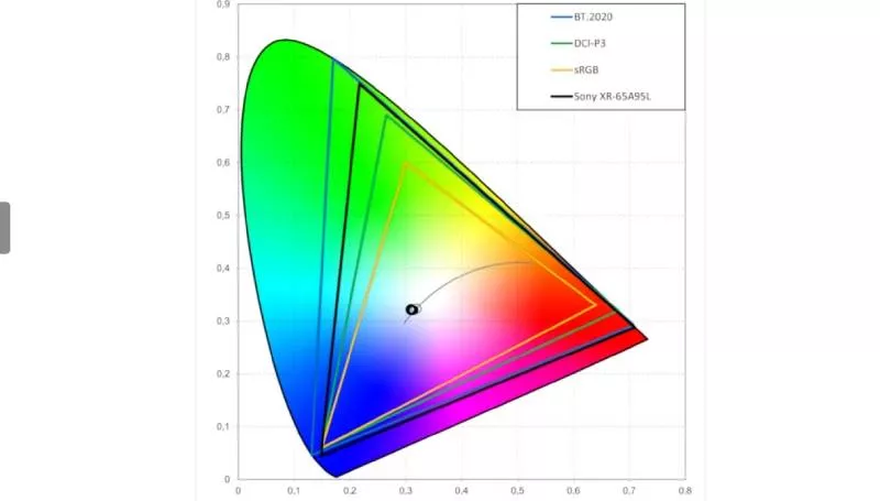 Stejně jako v minulosti pokrývá špičkový televizor Sony téměř kompletně barevný prostor DCI-P3. Sony se při převodu spoléhá výhradně na formát Dolby Vision. Přestože obrazovka nezůstává u videí HDR10+ tmavá, dynamika kontrastu není tak jemně odstupňovaná, protože se nepočítá snímek po snímku, ale pouze celkově pro celý film.