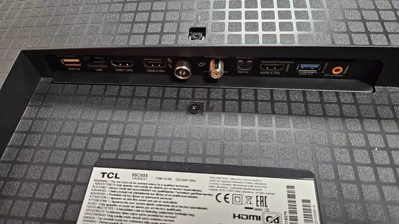 TCL 55C655 používá systém Google TV, který reaguje okamžitě a bez zpoždění. V portové výbavě najdeme tři HDMI 2.1 konektory (jeden s podporou eARC), optický i analogový zvukový výstup, klasickou sadu TV tunerů (DVB-T2/S2/C) a jeden USB 3.0 konektor pro vstup multimediálního obsahu z externího disku, ve výbavě je ještě jeden napájecí USB-A konektor. Samozřejmostí je možnost připojení pomocí Wi-Fi, LAN nebo Bluetooth.
