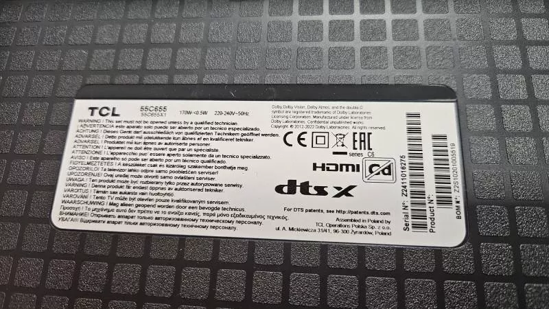 Televizor TCL 55C655 má vynikající reproduktorovou sestavu 2.1 od společnosti Onkyo. Na snímku subwoofer na zadní straně televizoru