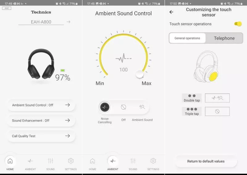 Kvalita reprodukce je stejně jako pohodlí a výdrž na baterii na špičkové úrovni. Technics EAH-A800 nezklamou ani audiofily zvyklé na mnohem dražší sluchátka. Samozřejmě se jedná o bezdrátová Bluetooth sluchátka, u kterých se počítá s poslechem hudby nejen v klidu domova, ale hlavně na cestách, takže kvalitu reprodukce výrazně ovlivňuje ladění interní elektroniky.