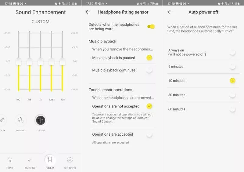 V případě potřeby lze použít pro úpravu intenzity basů ekvalizér v mobilní aplikaci. Ta nabízí i bohaté možnosti nastavení ANC, ovládacích prvků, usínání a vypínání sluchátek nebo aktualizace firmwaru.