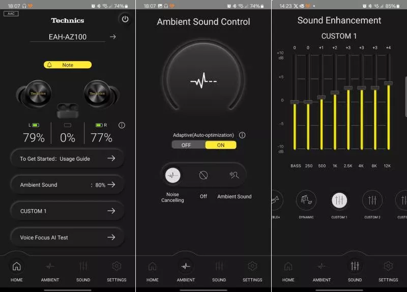 Sluchátka Technics EAH-AZ100 jsme měli možnost testovat celý měsíc před oficiálním uvedením, takže jsme je museli spárovat s do uvedení neveřejnou verzí aplikace Technics Audio Connect 4.0.0 s firmwarem JNZ1ZB 1.010. Oficiální aplikace je ale stejná a nabízí shodné možnosti nastavení.