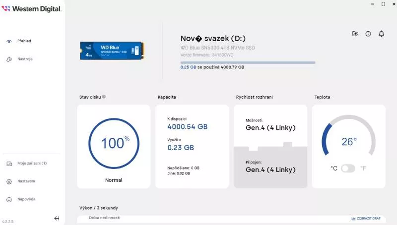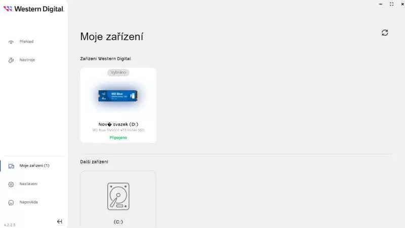 Western Digital nabízí k disku užitečný software WD Dashboard pro správu a sledování stavu, včetně možnosti aktualizace firmwaru. Z tohoto nástroje lze i stáhnout klonovací program Acronis.