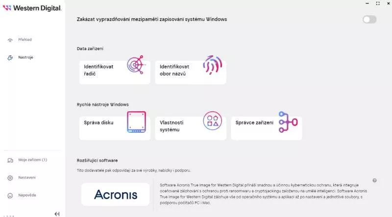Aplikace WD Dashboard odkazuje i na bezplatně využitelný klonovací nástroj Acronis