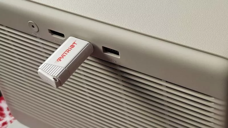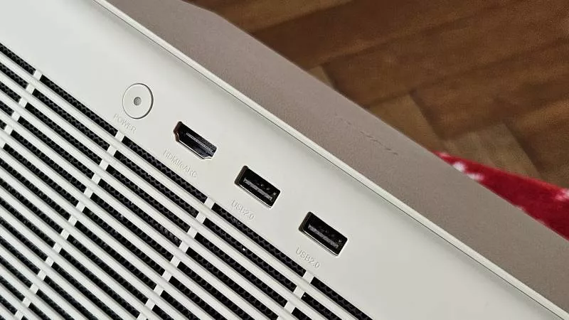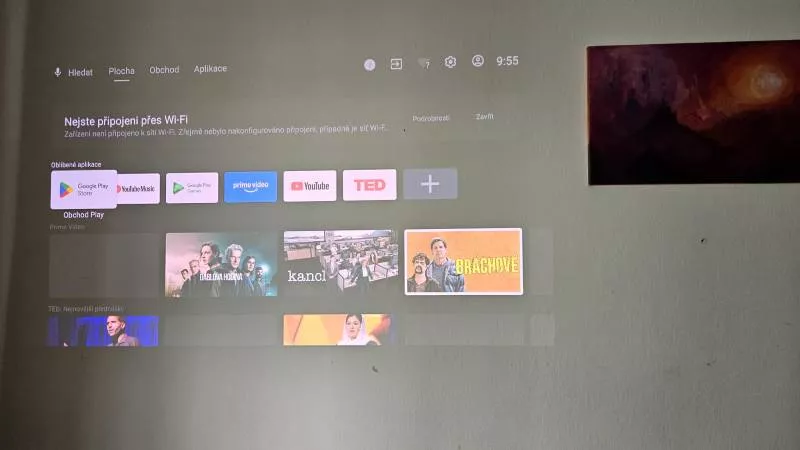 Na druhou stranu projektor podporuje bezdrátový přenos videa nejen přes Wi-Fi, ale dokáže zrcadlit obraz z počítače nebo telefonu přes Miracast a Chromecast. Vedle HDMI konektoru jsou dva USB-A porty pro připojení externího disku. V tomto ohledu jsme byli naprosto spokojeni, protože projektor neměl problém pracovat s 1TB externím SSD, za kterého jsme si pouštěli obsah v různých formátech. Integrovaný přehrávač podporuje většinu formátů, pokud by na něco nestačil, stačí z Obchodu Play stáhnout VLC.