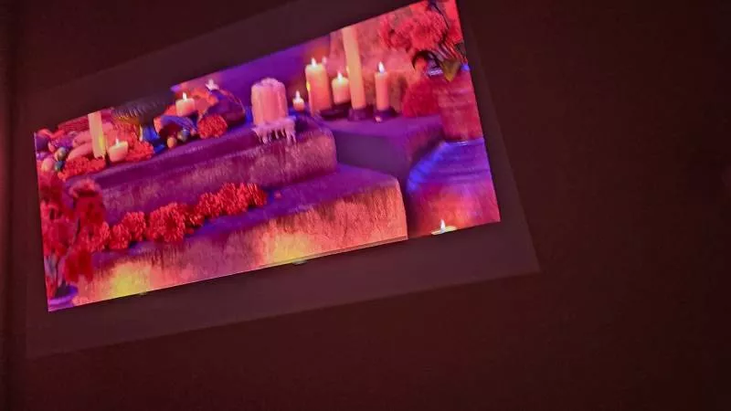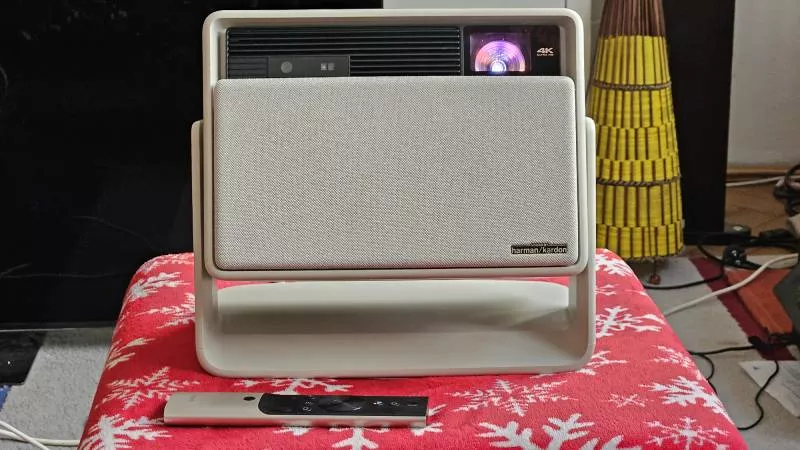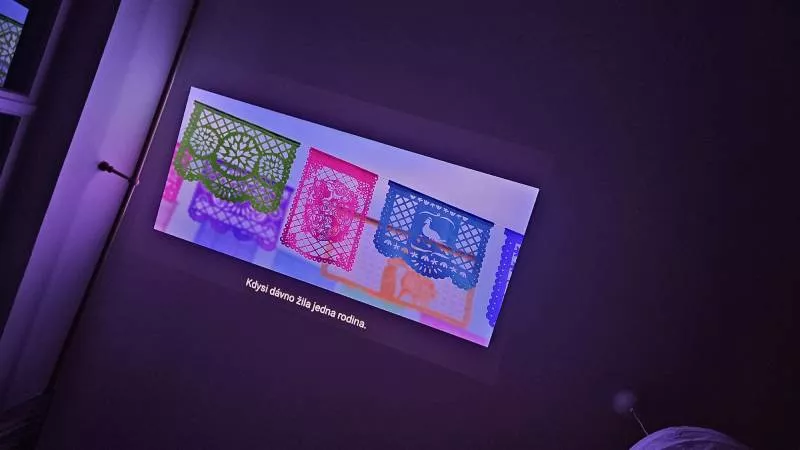 Kvalita projekce nás s ohledem na malé rozměry zařízení velmi příjemně překvapila. 4K obraz je dostatečně jasný i pro odpolední sledování v nezastíněné místnosti, i když vrcholné kvality projektoru samozřejmě vyniknou až večer. Na sledování odpoledního fotbalového zápasu nebo televizního vysílání výkon laserové lampy s maximální svítivostí 1 800 ANSI lm stačí, ale pokud si chcete podívanou pořádně užít, doporučujeme počkat na večer nebo noc.