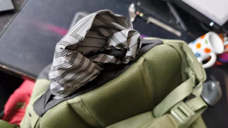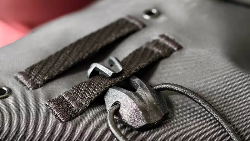 Vysokou odolnost proti vodě ale vykazuje i nylonová látka s atraktivním zeleným zbarvením. Během několikaměsíčního testu jsme s batohem prošli řadou lijáků a technika ukrytá uvnitř zůstala bezpečně v suchu, vlhkost nepronikla ani okolo zipů. Na pogumované zadní ploše se nachází dvě přezky pro uchycení červeného cyklistického světla a helmu lze uložit pod upevňovací šňůru.