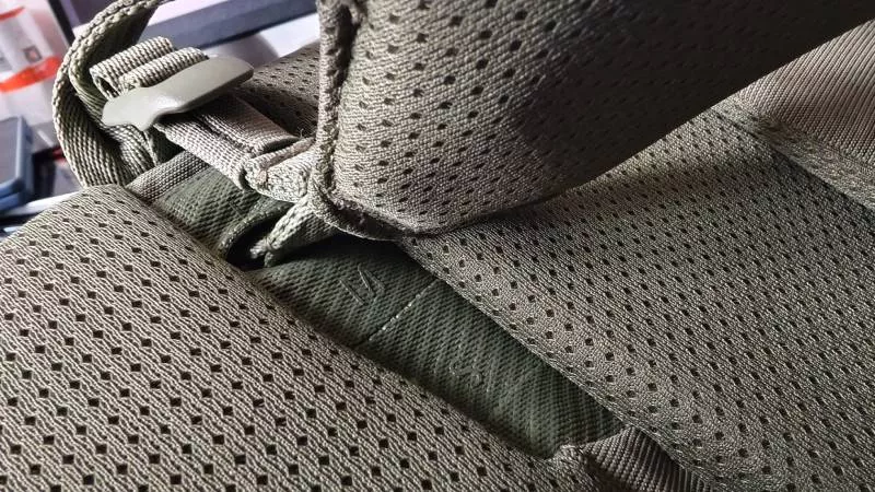Záda batohu jsou bohatě polstrovaná, ale poměrně měkká, což nemusí každému vyhovovat. Batoh při chůzi nijak netlačí, ale také se na zádech drobně hýbe a působí celkově volnějším dojmem. Po několika dnech jsme si batoh zvykli při přenášení upevnit hrudním a bederním pásem (dá se odepnout), který zajistí výbornou stabilitu nejen při chůzi, ale i při jízdě na kole. Batoh jsme testovali v jarních a letních měsících a přes vysoké polstrování s výraznými ventilačními prolisy se nám pod ním poměrně hodně potila záda.