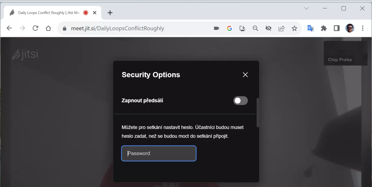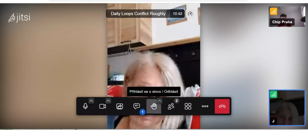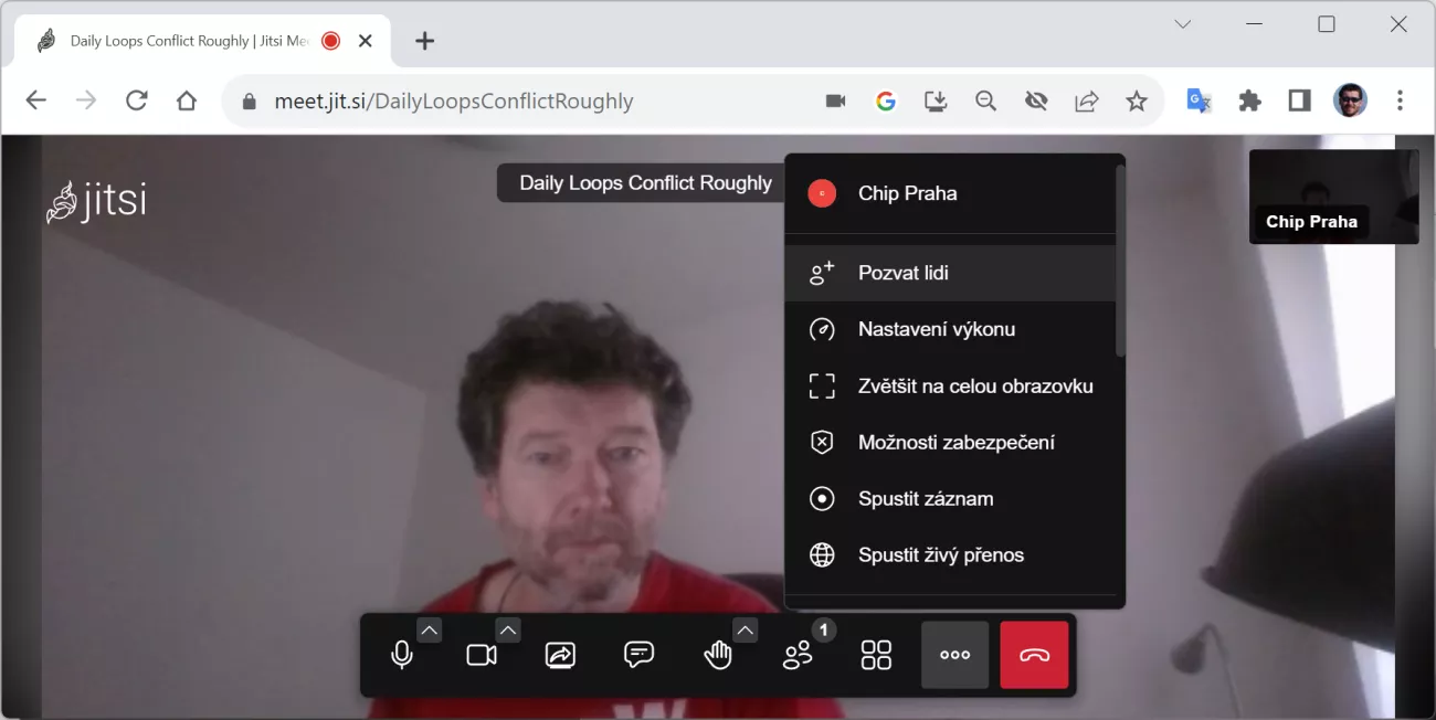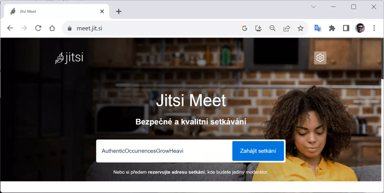 Chcete-li zahájit videokonferenci, zadejte v prohlížeči adresu meet.jit.si a klikněte na "Zahájit setkání". Jitsi následně požádá o přístup ke kamerce a mikrofonu vašeho počítače, což potvrďte tlačítkem "Povolit" a spustí novou videokonferenci pod jménem, které bylo předtím uvedeno v zadávacím poli vedle tlačítka pro zahájení setkání. To se každých pár sekund znovu vygeneruje a skládá se ze čtyř náhodně vybraných slov. Případně můžete pro setkání vybrat vlastní termín. Nemělo by však být snadné jej uhodnout, protože slouží nejen k odlišení, ale také jako počáteční bezpečnostní opatření.