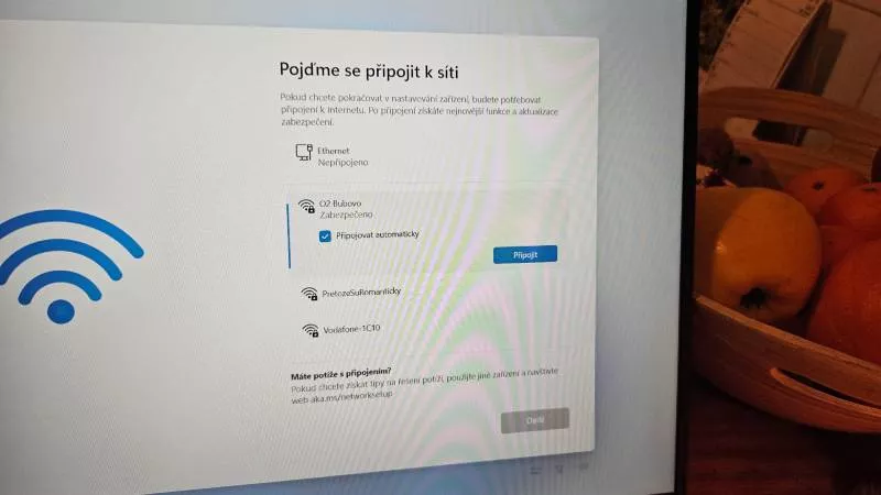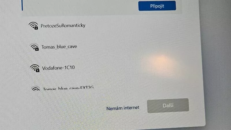 V tomto okamžiku stačí stisknout klávesovou zkratku Shift a F10. Objeví se černé okno s příkazovým řádkem, do kterého napíšete příkaz „oobe\bypassnro“. Počítač nahlásí, že si ještě chvíli musí něco zařídit, pak se restartuje a v okně s výběrem Wi-Fi připojení se vám objeví vytoužená možnost „Nemám internet“. Klikněte na ní a pak vyberte možnost „Pokračovat s omezenou instalací“. Poté počítač bez odmlouvání nainstaluje verzi Windows, kterou má uloženu od výrobce. Nebudete možná mít nejnovější aktualizace, ale to počká, až zase budete v dosahu solidní Wi-Fi. Pokud byste pak chtěli Windows doinstalovat bez přihlášení k účtu Windows, návod najdete na našich stránkách zde.