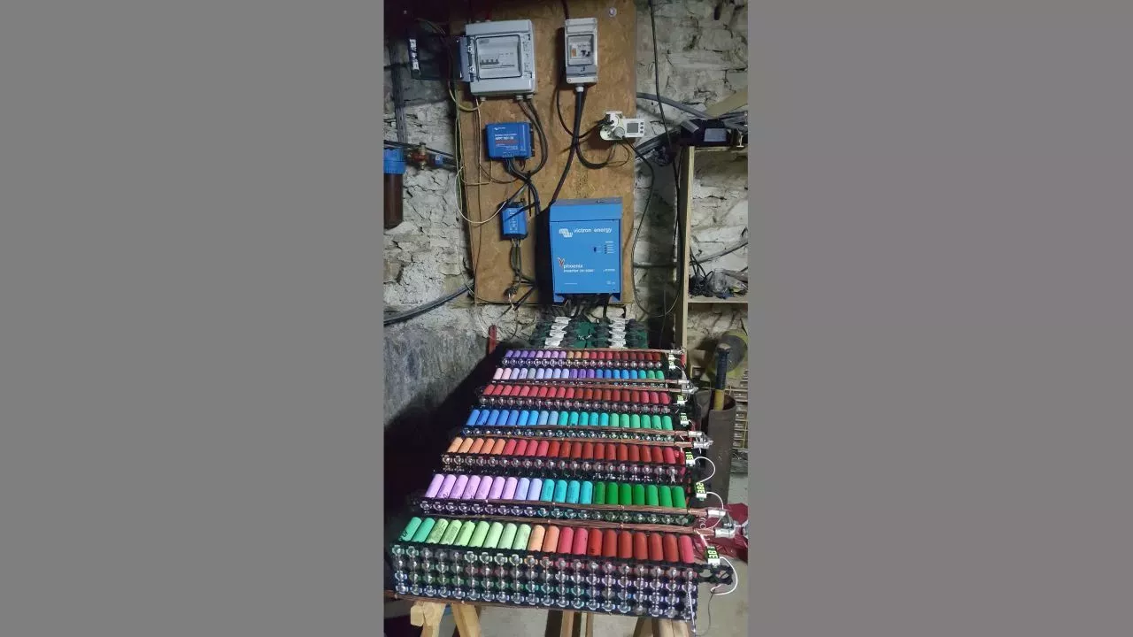 To byl ovšem pouze skromný začátek jeho velkého plánu. V kůlně, nedaleko od svého domu, začal svůj solární systém postupně rozšiřovat. Shromáždil 650 použitých baterií z laptopů a vyjmuté články propojil do jednotlivých segmentů. Vzniklé bateriové moduly pospojoval měděnými vodiči. Výsledkem jeho snažení bylo úložiště elektrické energie, jehož kapacita dosahovala hodnoty přibližně 100 Ah.
