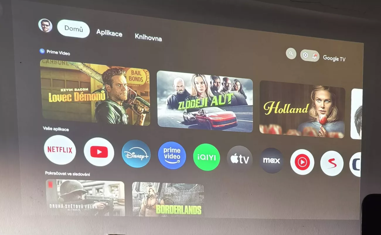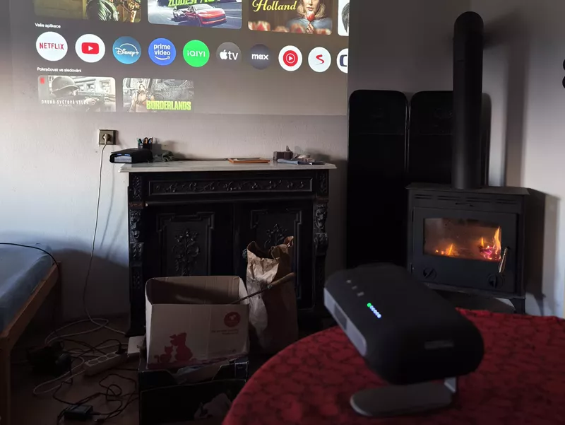 Můžete ho připojit přes HDMI nebo USB-C třeba k počítači nebo mobilu a začít promítat, případně nainstalujete potřebné aplikace a přihlásíte se – není pak problém si pustit něco z iVysílání, Netflixu či YouTube. Není ani problém pustit video nebo obrázky bezdrátově z mobilního telefonu. Funguje to stejně jako s Chromecastem. A dalším zdrojem může být USB flash disk nebo vnitřní paměť zařízení.