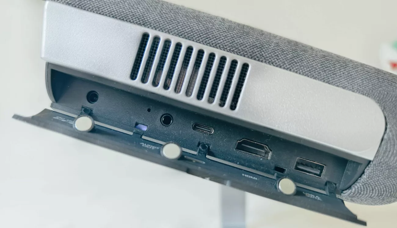 Jinak, samozřejmě můžete využít zásuvku a dodaný adaptér. Ten má sice proprietární konektor, ale naštěstí pro nabíjení lze použít také přítomný USB-C port projektoru. Pro napájení lze samozřejmě použít i powerbanku a tím provoz bez zásuvky prodloužit.