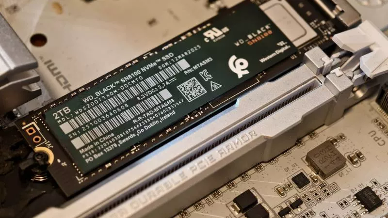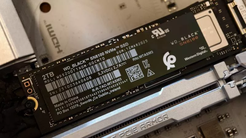 WD SN8100 vypadá jako běžný M.2 NVMe SSD disk. Má klasickou délku 80 mm, šířku 22 mm a díky jen 2,4 mm výšce se vejde i do notebooků, i když momentálně jeho schopnosti využijí pouze nejnovější desktopové základní desky s podporou PCIe 5.0 x4 nejen na slotu pro velké rozšiřující karty, ale také alespoň na jednom M.2 slotu.